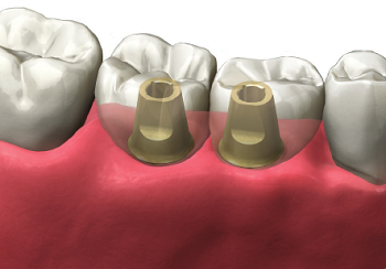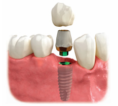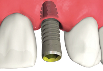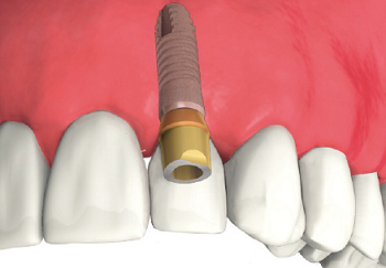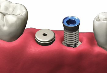 Ένα δόντι που λείπει μπορεί να αντικατασταθεί από ένα οδοντικό εμφύτευμα χωρίς να επεμβαίνουμε στα υγιή γειτονικά δόντια. Μετά την τοποθέτηση του εμφυτεύματος, ένα διαβλεννογόνιο στήριγμα υποστηρίζει την τελική στεφάνη.