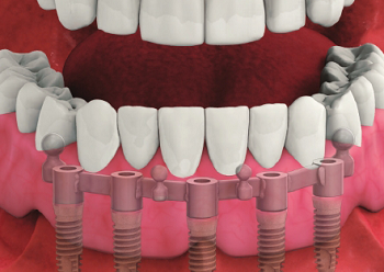 Αν όλα τα άνω ή κάτω δόντια λείπουν, πολλαπλά εμφυτεύματα μπορούν να χρησιμοποιηθούν για να υποστηρίξουν μία νέα αφαιρούμενη οδοντοστοιχία η οποία θα εφάπτεται με ασφάλεια σε μία εξατομικευμένη μπάρα. Τα νέα δόντια υποστηρίζονται σταθερά από τα εμφυτεύματα. Η νέα σας οδοντοστοιχία μπορεί να αφαιρείται καθημερινά για τον καθαρισμό της.